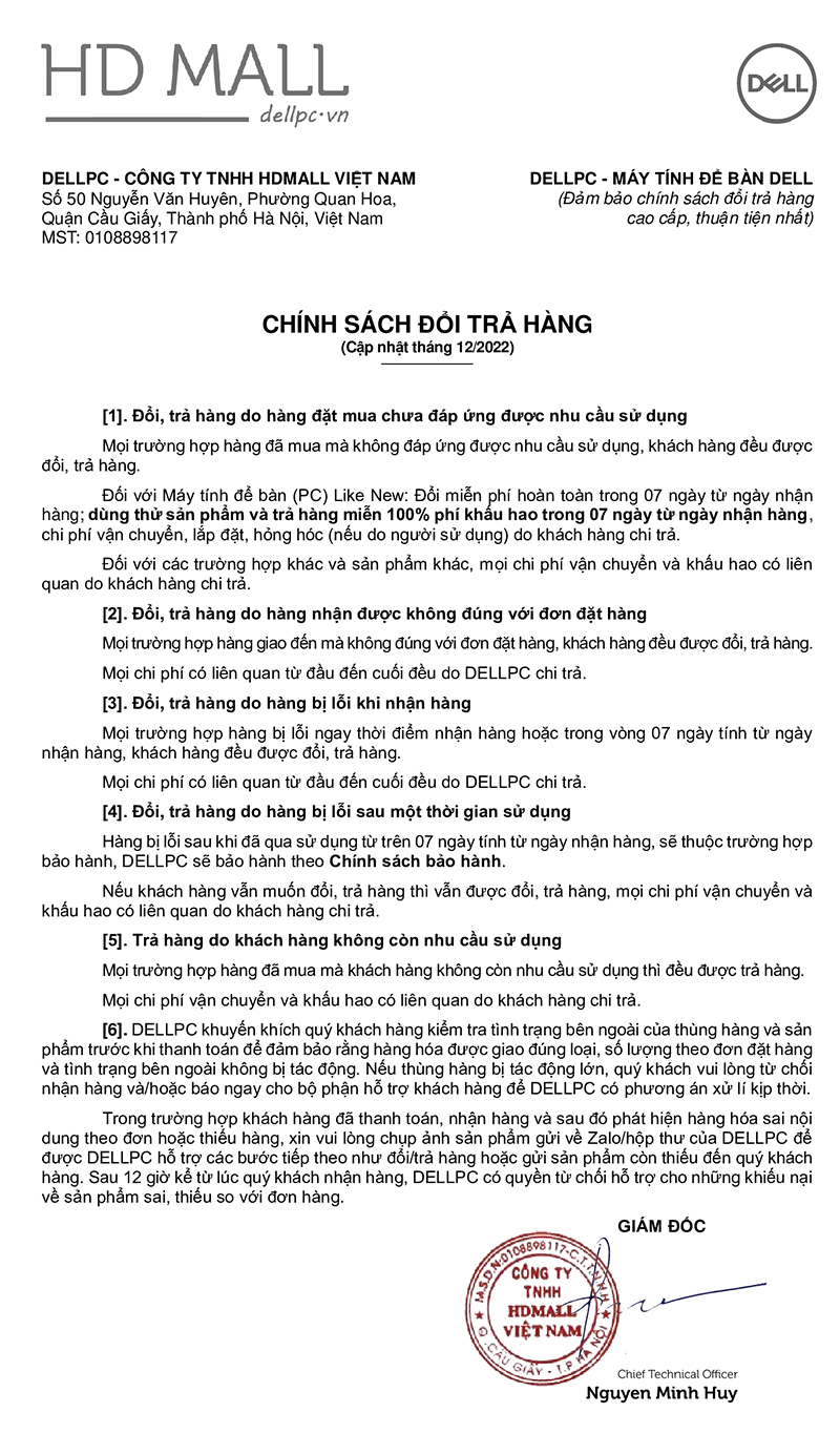 Mọi chi tiết hoặc thắc mắc quý khách vui lòng liên hệ với DELLPC qua Zalo/số điện thoại hỗ trợ 0901-160-558 hoặc để lại lời nhắn tại website này.