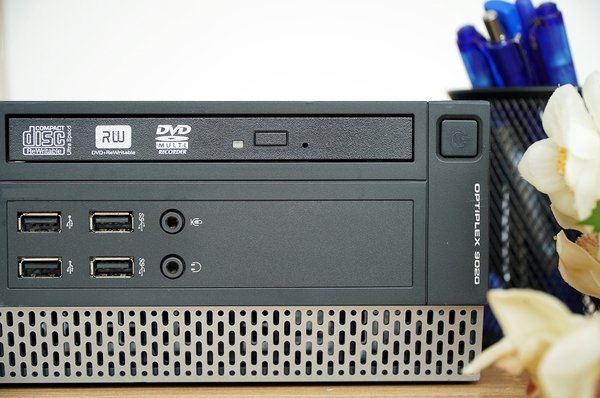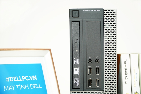 Cây Dell OptiPlex 9020 trang bị mặt trước 04 cổng USB, 01 cổng loa, 01 cổng micro, ổ DVD-RW tùy chọn; kích thước ngang 9.26cm, cao 29cm