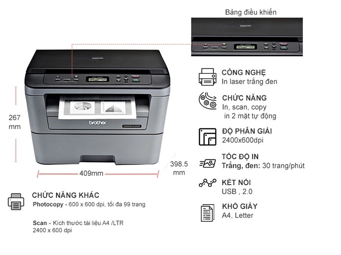 | Chức năng | In, scan, copy, Automatic 2-sided Print |