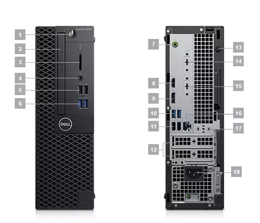 Dell OptiPlex 3060 trang bị tiện nghi, với 08 cổng USB tiện dụng từ 2.0 đến 3.1, 01 cổng DP, 01 cổng HDMI, 01 cổng mạng dây